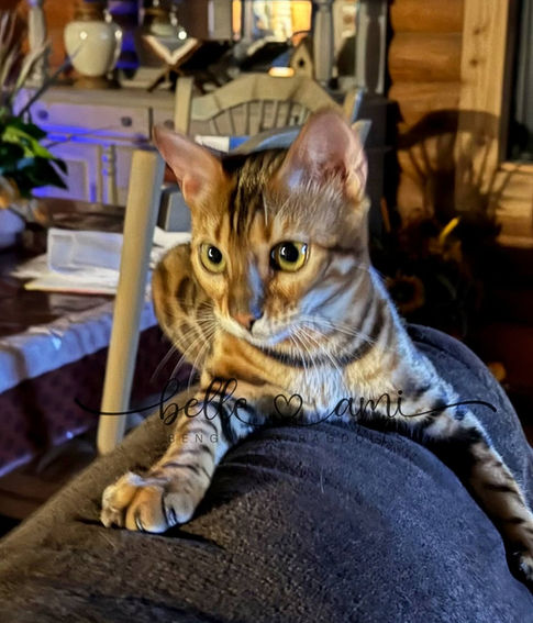 Gilly was originally to be a queen at another cattery. They were no longer able to continue breeding so I purchased her back. She had one litter at the other cattery and she has been a joy to have back with us. Her babies will be very pretty!